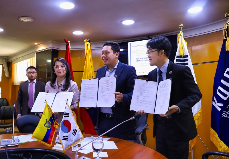 Desde el año 2005, el Gobierno de la República de Corea, a través de KOICA, ha contribuido con más de 96 millones de dólares en proyectos de desarrollo a Ecuador y al momento ejecuta cuatro proyectos con diferentes instituciones públicas a nivel nacional.