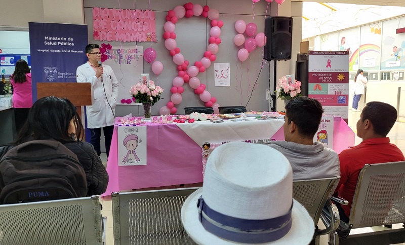 El Hospital Vicente Corral Moscoso, a través del servicio de Oncología y Ginecología, con el apoyo de internos de medicina y enfermería, conmemoró el Día Mundial de Lucha contra el Cáncer de Mama, con el lema ¡Autoexamínate para vivir!