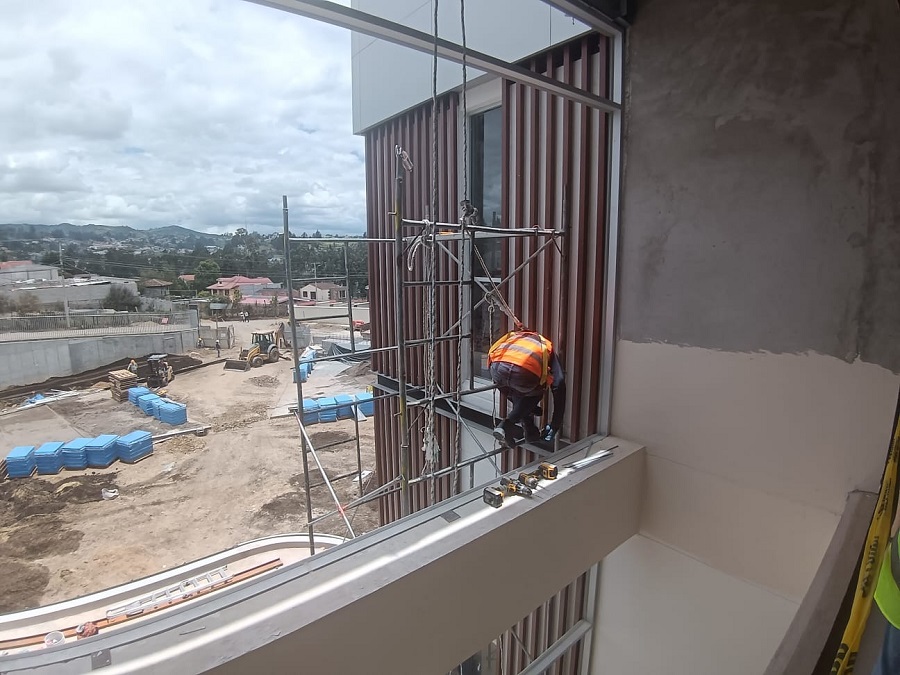 En los tres pisos que tiene la casa de salud, están colocados los ventanales, mientras que en el primero y segundo se instala el vinil y también los muebles de madera en las 22 habitaciones, más la red de grifería e inodoros.