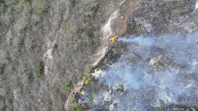 Hasta el momento existe más de 200 hectáreas afectadas, pero gracias a la aplicación de varias técnicas implementadas por el cuerpo de bomberos, entre ellas, la apertura de zanjas o líneas de defensa, con el tractor de la Prefectura, se ha logrado controlar el incendio en un 70%.