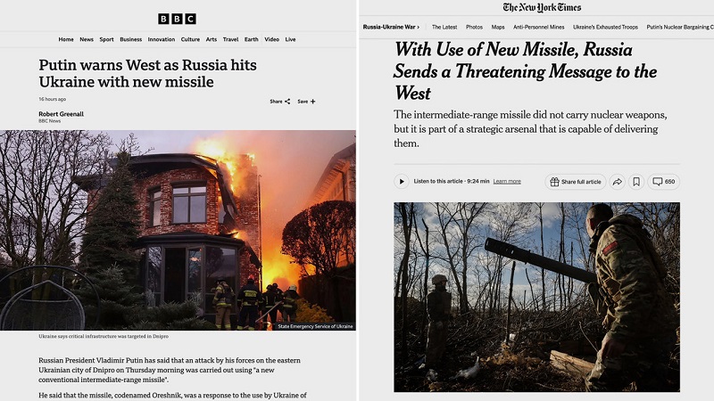 El anuncio del presidente ruso, Vladímir Putin, del exitoso lanzamiento del novedoso misil balístico de alcance intermedio Oréshnik contra un complejo ucraniano en Dnepropetrovsk ha desatado una ola de reacciones en la prensa occidental, difundió la cadena RT este viernes 22 de noviembre.