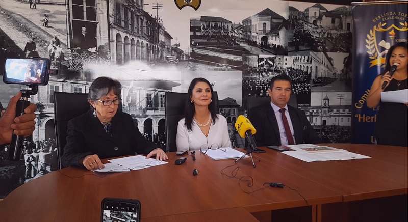 Exalumnas y autoridades del plantel informar sobre el programa de festividades.